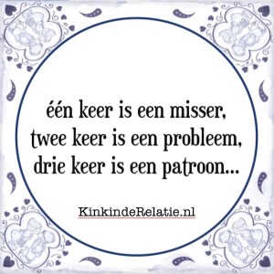 “één keer is een misser, twee keer is een probleem, drie keer is een patroon”